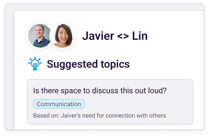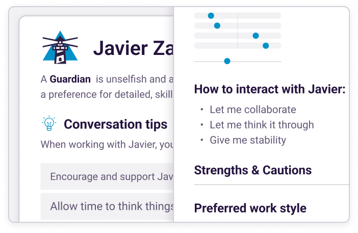 Measure the top two predictors of on-the-job performance with validated hiring assessments. Then use the results of those assessments for better 1:1s, communication, relationships, and development — personalized to each manager and employee.